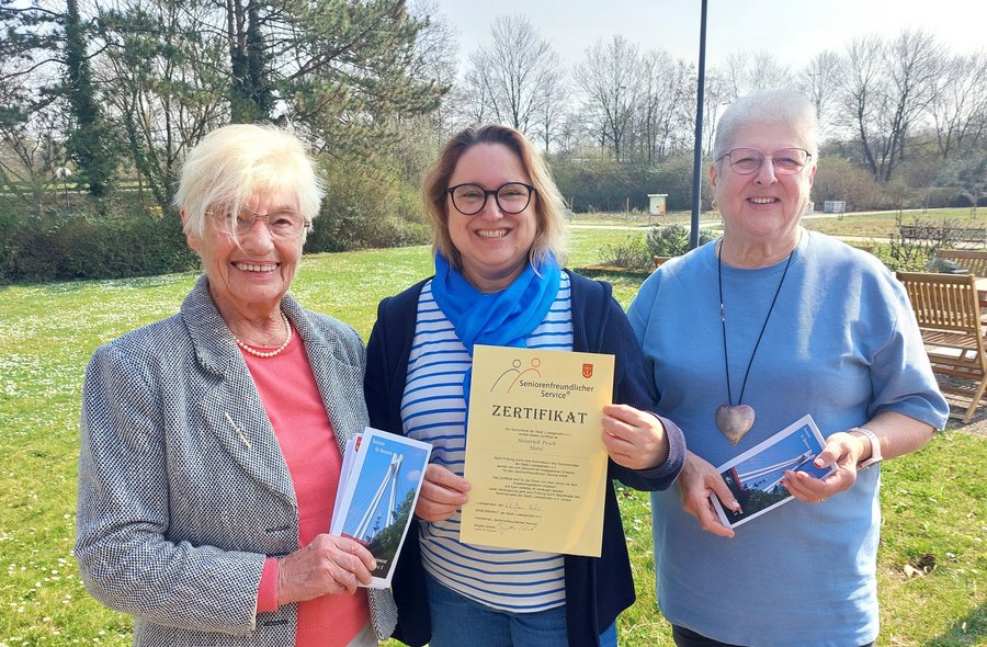 Große Freude über das Zertifikat (v.l.): Gudrun Alker (Seniorenrat), Christiane Kulick (Heinrich Pesch Hotel) und Birgitta Scheib (Seniorenrat)
