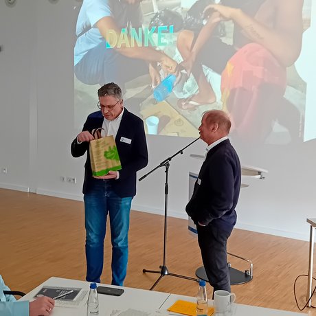 Zum Abschluss dankte Michael Ganster dem Referenten für seine inspirierenden Ausführungen. Mit einem Geschenk verschiedener Teesorten verabschiedete er Monsignore Spiegel – verbunden mit dem Wunsch, dass die Gedanken des Tages in den Gemeinden weiterwirken mögen.